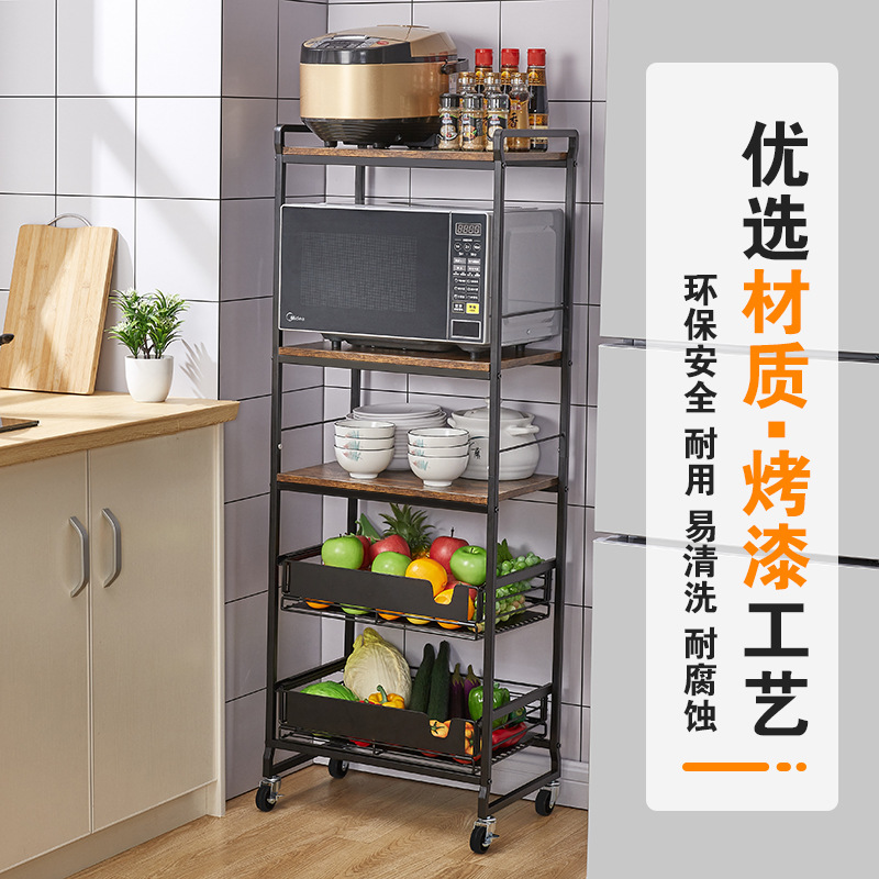 Kitchen Floor Storage Rack Carbon Steel Multi-Layer With Cabinet Door Dustproof Cabinet Microwave Oven Pot Storage Rack Cross-Border